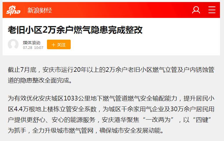 老舊小區(qū)2萬余戶燃?xì)怆[患完成整改(轉(zhuǎn)載于新浪財經(jīng)) 發(fā)布時間:2022-07-28    閱讀次數(shù):9406次