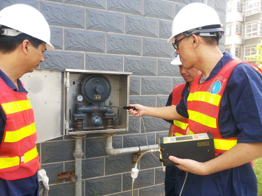 此次應(yīng)急演練模擬在市熱電路某小區(qū),管網(wǎng)巡檢人員進(jìn)行日常巡檢時(shí),發(fā)現(xiàn)該小區(qū)樓棟調(diào)壓器有嚴(yán)重漏氣現(xiàn)象,巡檢人員第一時(shí)間控制住現(xiàn)場,拉起警示帶,警示過往行人與車輛遠(yuǎn)離事故現(xiàn)場,嚴(yán)防燃?xì)庑孤┓秶鷥?nèi)有明火產(chǎn)生,同時(shí)按照既定的程序向部門負(fù)責(zé)人報(bào)告。接到報(bào)警后,部門負(fù)責(zé)人以及搶險(xiǎn)班組人員即刻到達(dá)事故現(xiàn)場,經(jīng)現(xiàn)場確認(rèn),事故等級(jí)為Ⅱ級(jí),并立即啟動(dòng)事故應(yīng)急預(yù)案。