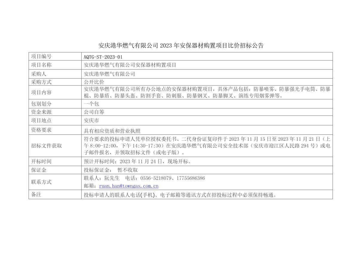 2023安慶港華安保器材購置項(xiàng)目比價(jià)招標(biāo)公告