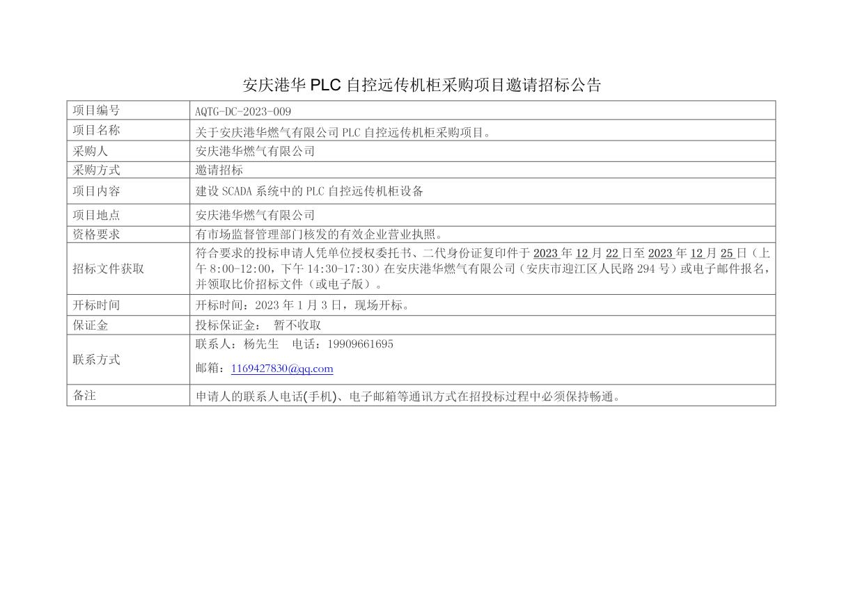 安慶港華PLC自控遠(yuǎn)傳機(jī)柜采購(gòu)項(xiàng)目邀請(qǐng)招標(biāo)公告
