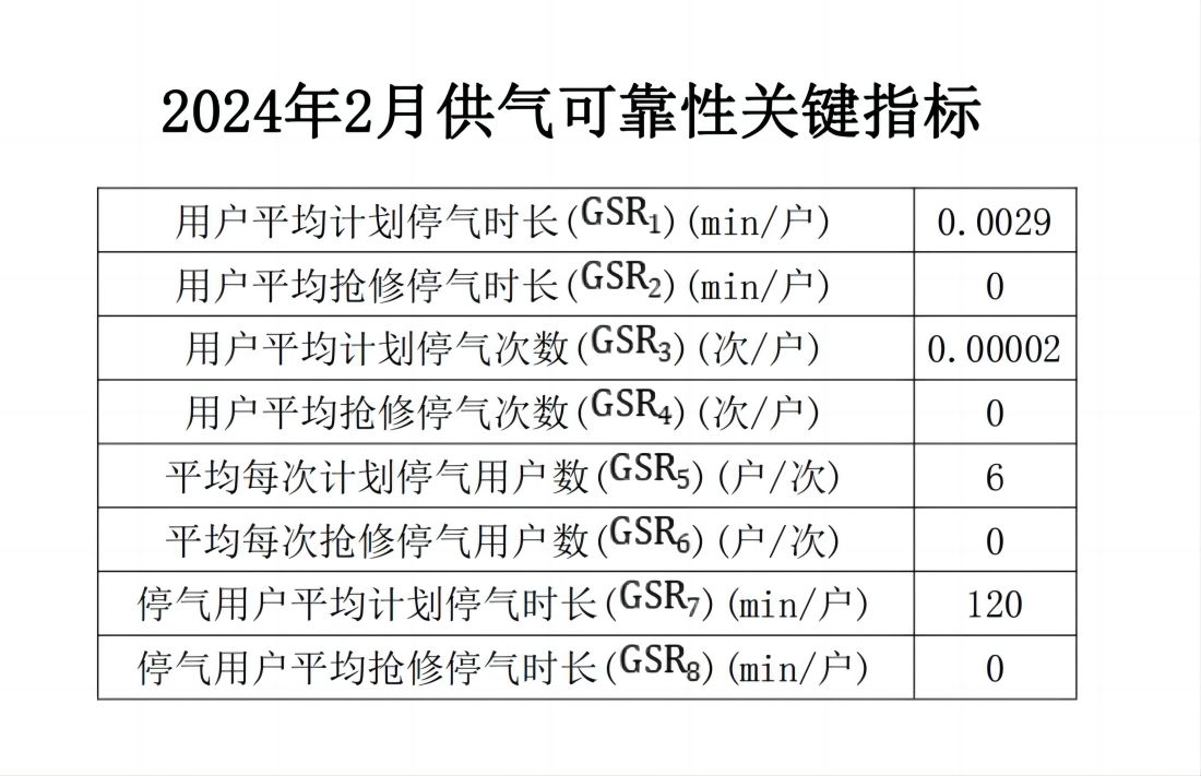 2024年2月供氣可靠性關鍵指標