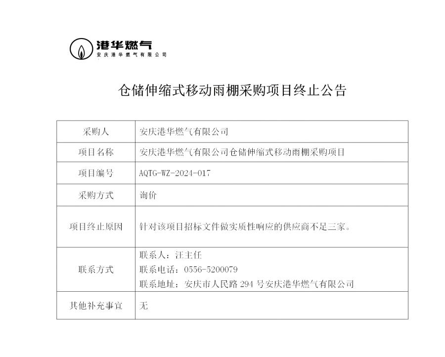 倉儲伸縮式移動雨棚采購項(xiàng)目終止公告 發(fā)布時間:2024-10-15    閱讀次數(shù):2907次