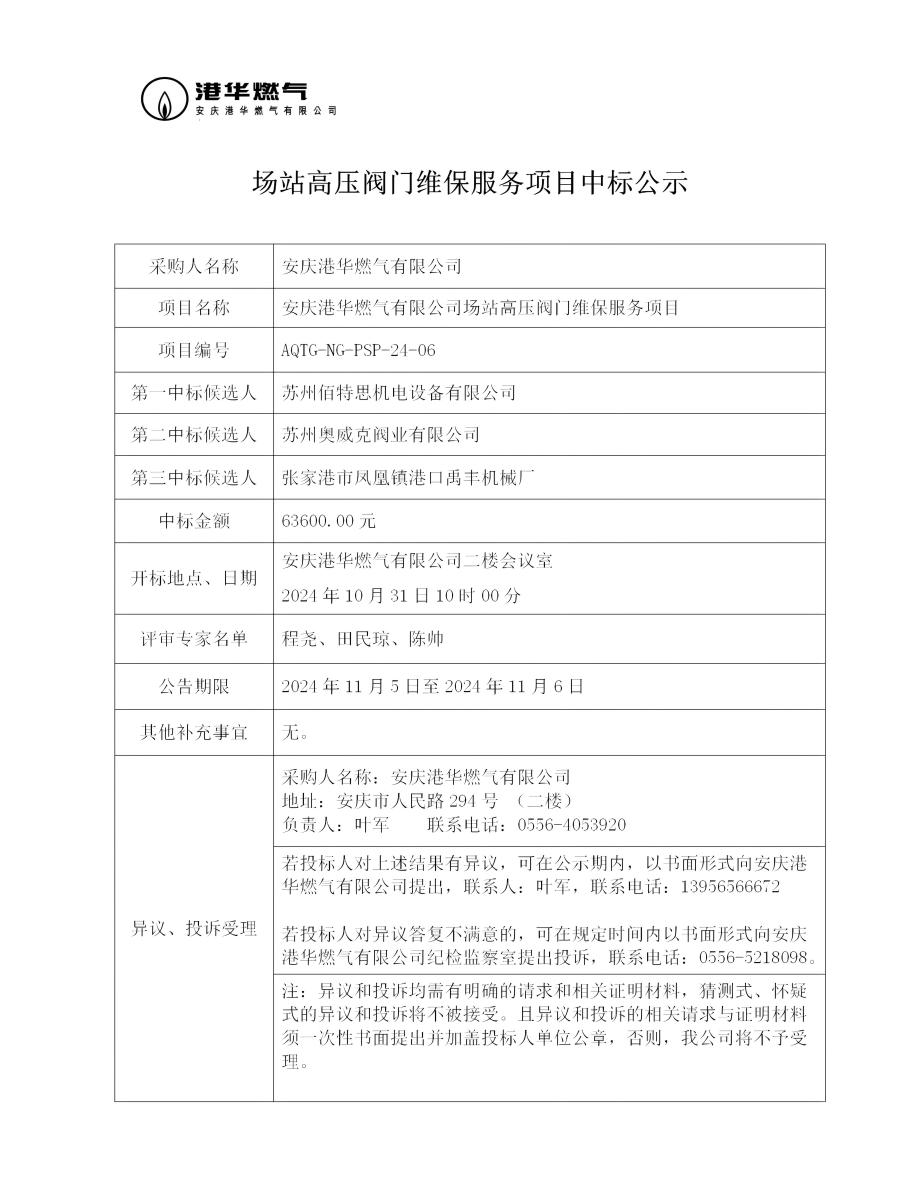 場(chǎng)站高壓閥門(mén)維保服務(wù)項(xiàng)目中標(biāo)公示