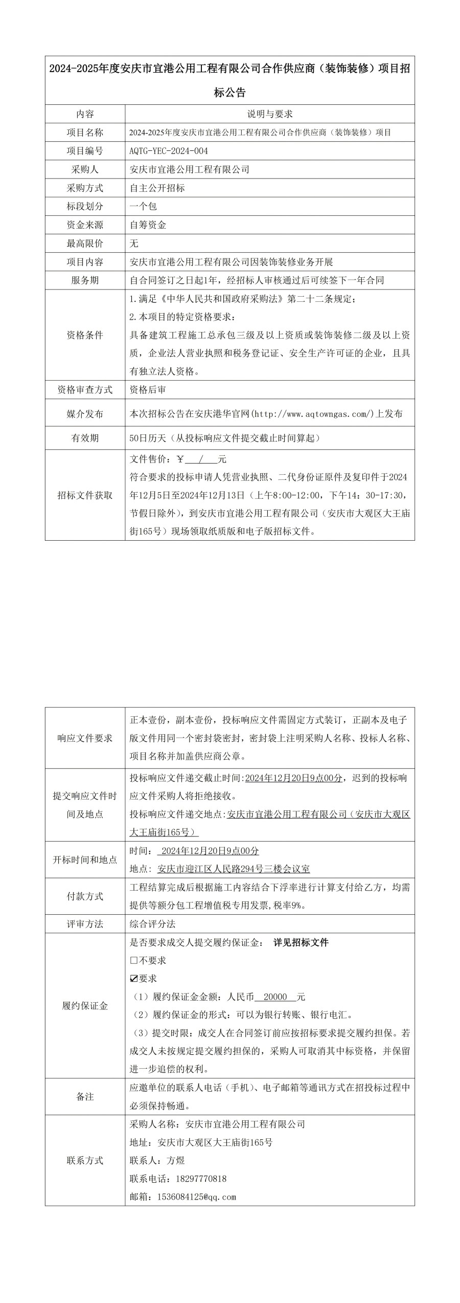 2024-2025年度安慶市宜港公用工程有限公司合作供應(yīng)商(裝飾裝修)項(xiàng)目招標(biāo)公告