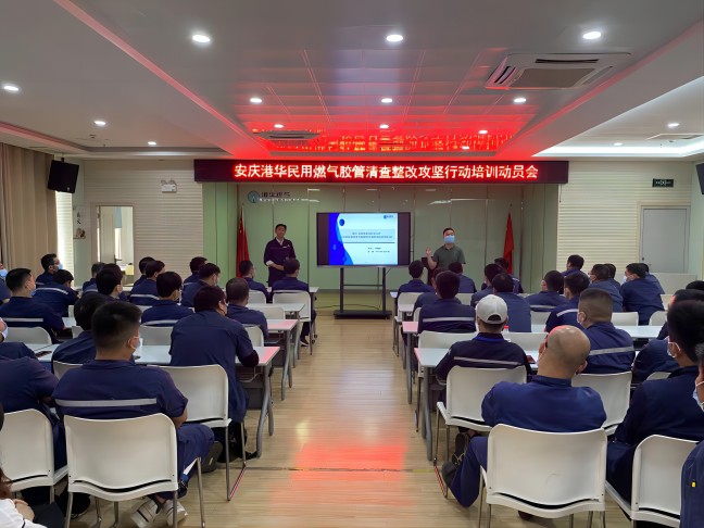 為貫徹落實住房和城鄉(xiāng)建設(shè)部辦公廳關(guān)于《加快排查整改燃氣橡膠軟管安全隱患的通知》精神,安慶港華高度重視,公司主要領(lǐng)導(dǎo)第一時間召開專題會議并制定民用膠管清查整改實施方案,由公司客戶服務(wù)部牽頭組織行動,各部門配合協(xié)助,并于5月27日上午召開全市民用膠管清查整改攻堅行動動員會。